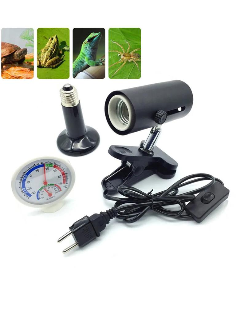 1Set Reptile Heating Lamp Kit 360 Degree Rotation Clamped UVA/UVB Lamp Rack Thermometer Hygrometer EU Plug 25/50/75/100/150/200W