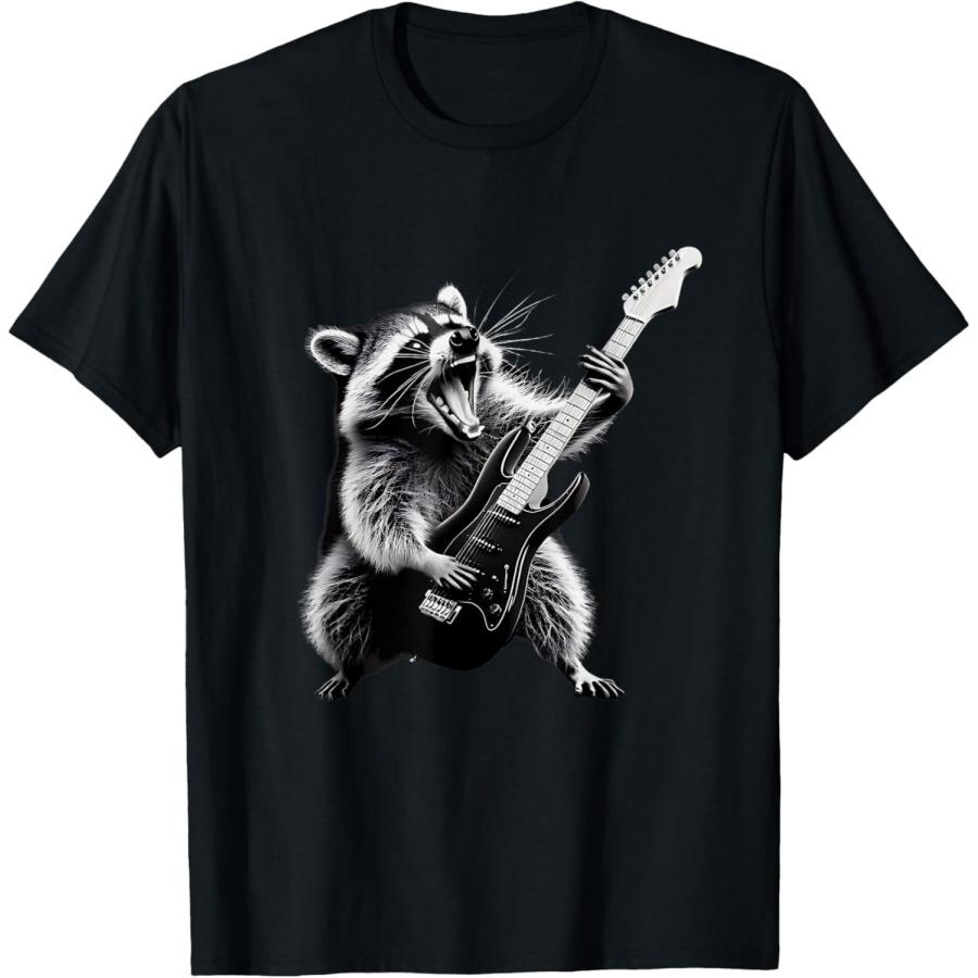 DCOJUZBO Rock Raccoon Playing Guitar Playing Guitar Raccoon Rock T-Shirt