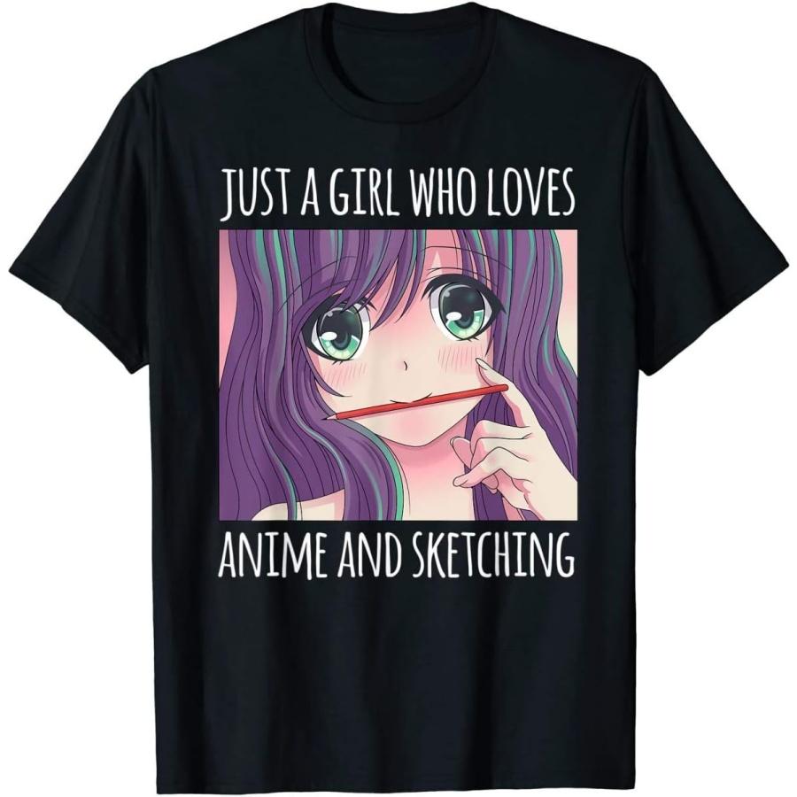 BINA STORE Just a Girl Who Loves Anime and Sketching Drawing Girls Gift T-Shirt B151220 Black