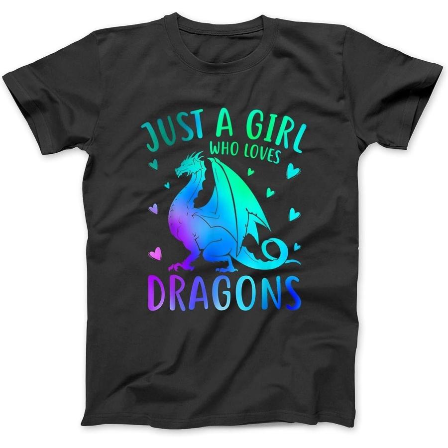 Cute Just A Girl Who Loves Dragons Women and Girls T-Shirt Sweatshirt Hoodie Tanktop for Men Women Kids Black