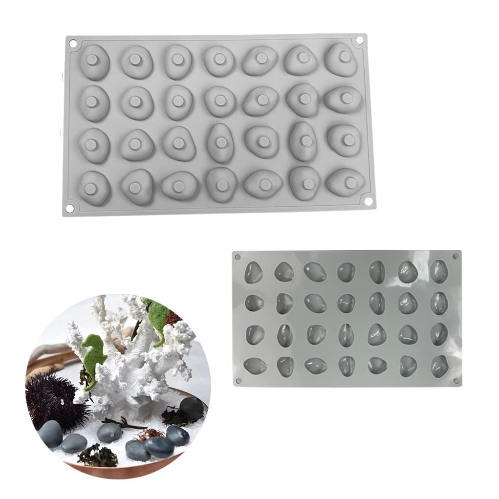 Silicone French Mousse Cake Mold, 3D Bakeware DIY Chocolate Soap Candle Mold, 28 Cavity Cobblestone