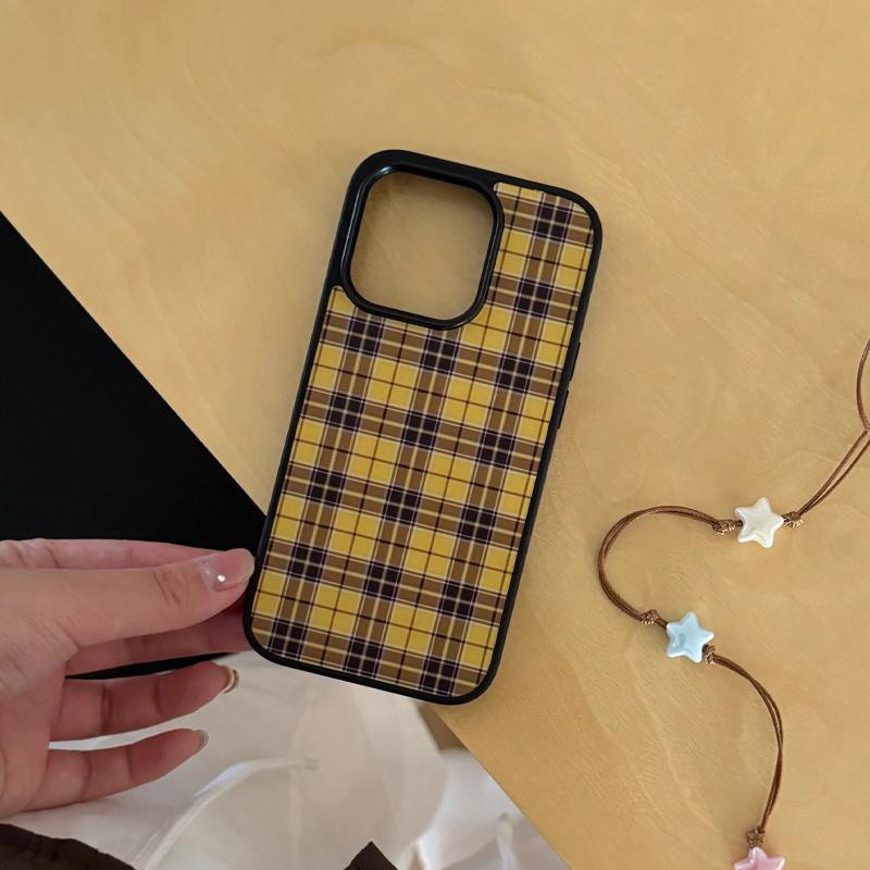 INS Retro American Simple Grid Black Border Matte Phone Case For iPhone 16 15 14 12 13 11Pro Max Plus Anti Drop Protective Cover