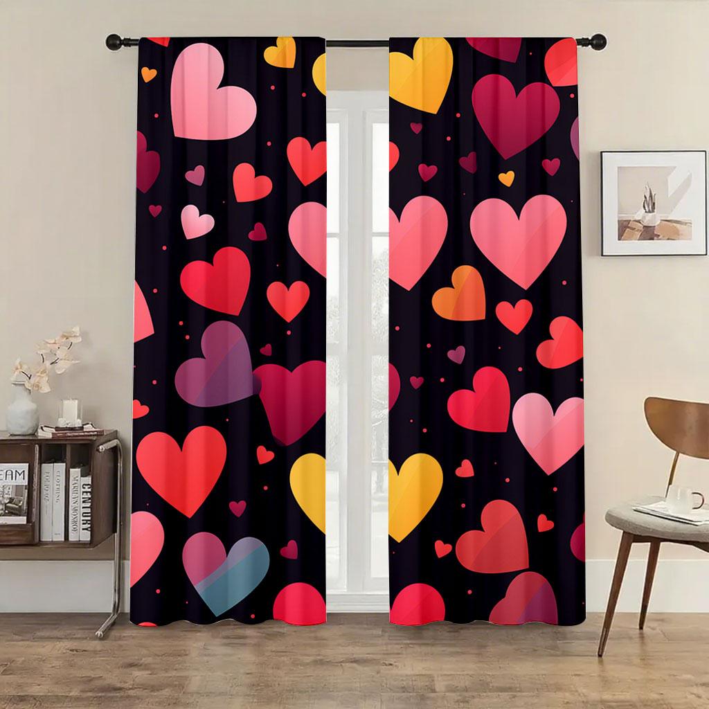 2pcs Colorful heart-shaped pattern curtains vibrant and romantic style bedroom living room pull rod pocket decoration