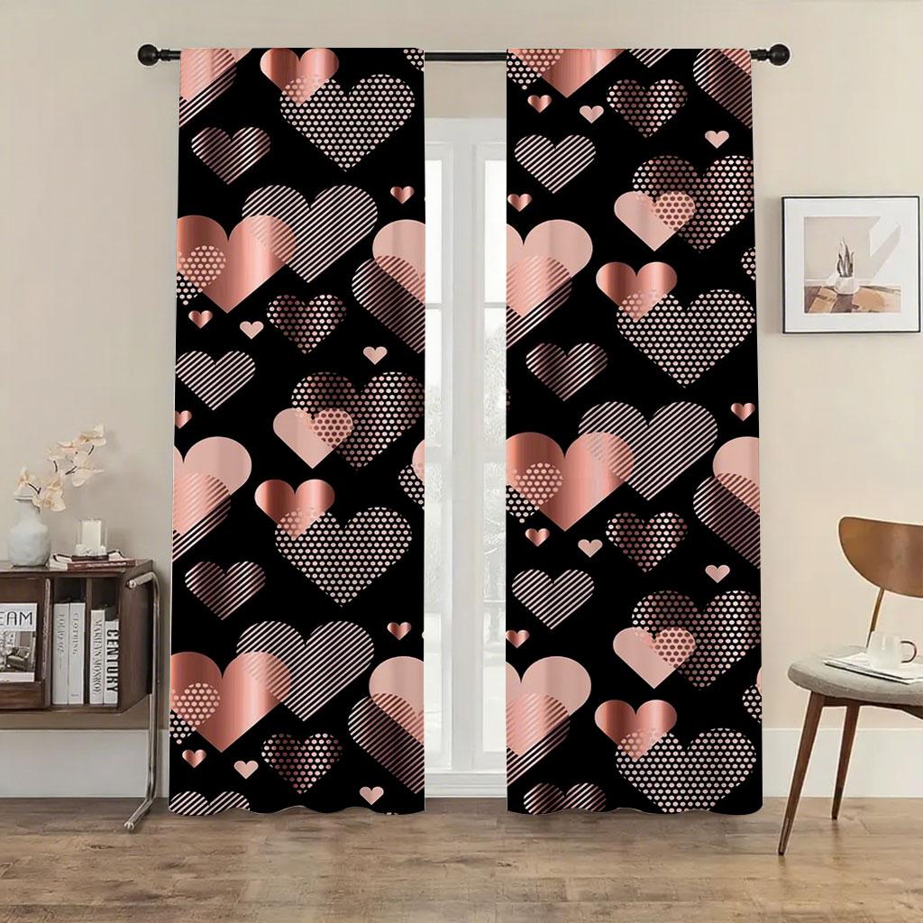 2pcs Rose gold heart-shaped curtains light luxury and romance bedroom and living room decorative with drawbar pockets