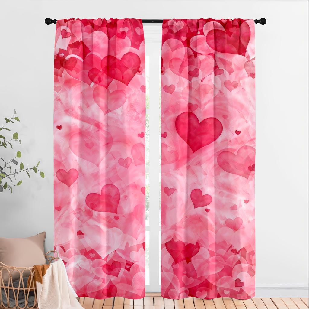 2pcs Blush Heart Pattern Curtains Perfect for Valentine's Day Window Decor Romantic Home Bedroom Living Room Decor