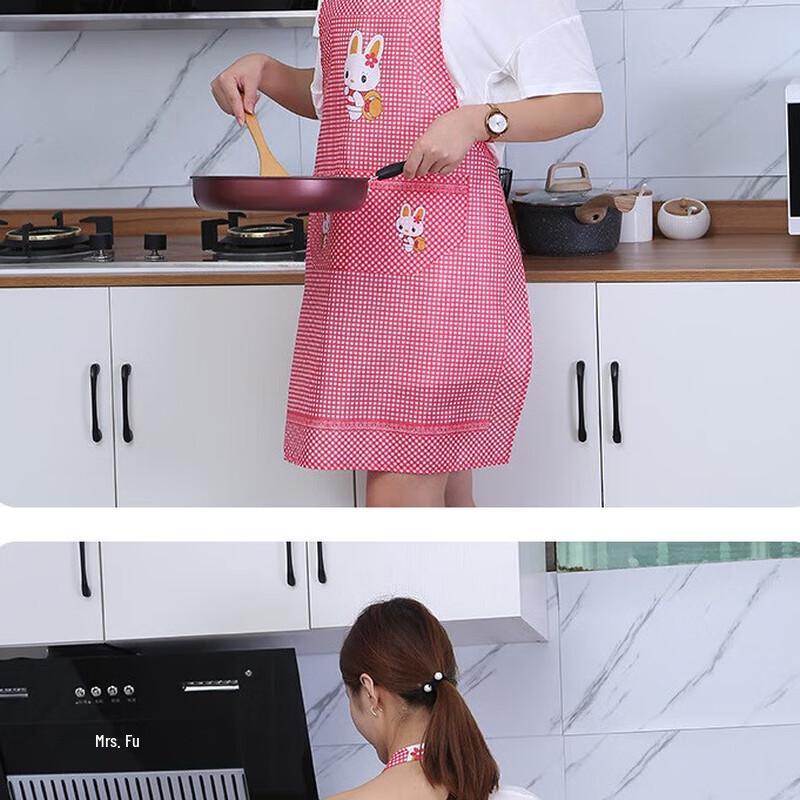 Cute Red Little Rabbit Long-Sleeve Kitchen Apron