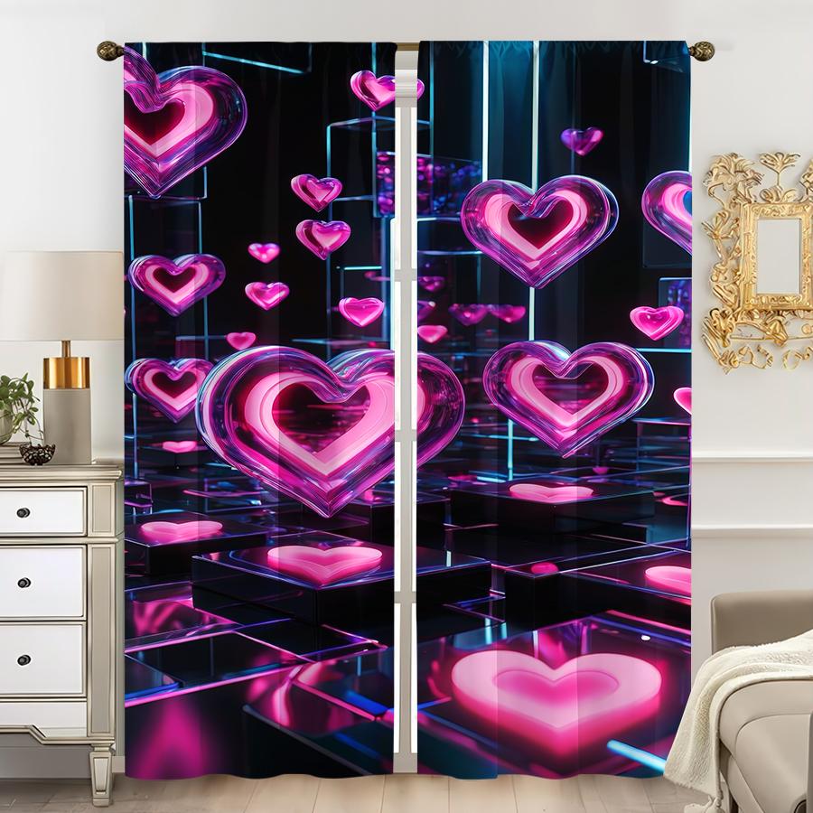 2PCS Neon Pink Love Technology Style Curtains Trendy Cool Style Suitable for Bedroom and Living Room Pull up Pocket Style