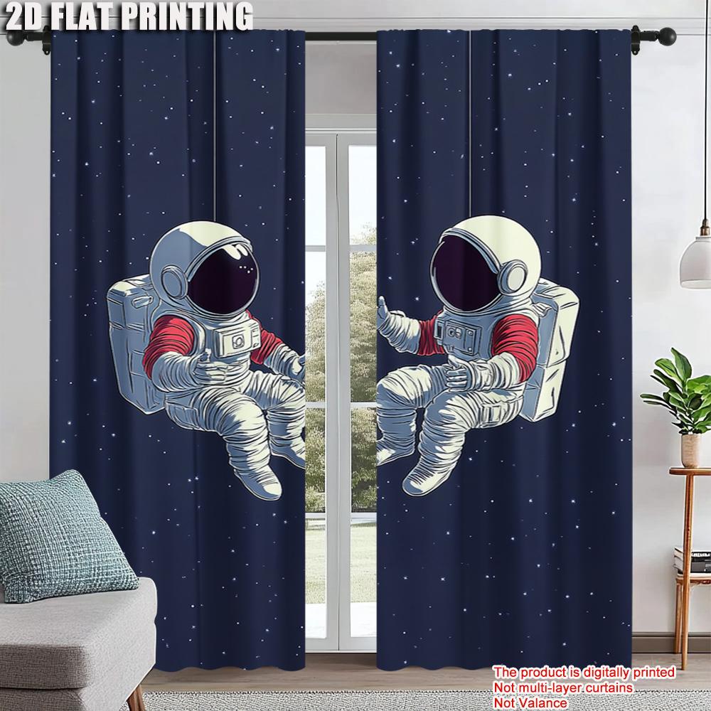 2Pcs Modern Space Astronaut Blackout Curtains Deep Blue Starry Sky Cartoon Spaceman Print Drapes For Bedroom Study Living
