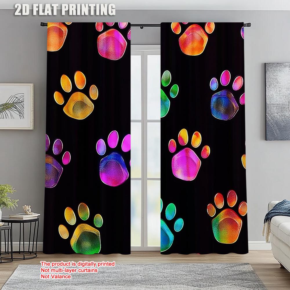 2pc Curtains Dog Paw Versatile Fabric Without Electricity Holiday Decorations Use for Bedroom living room