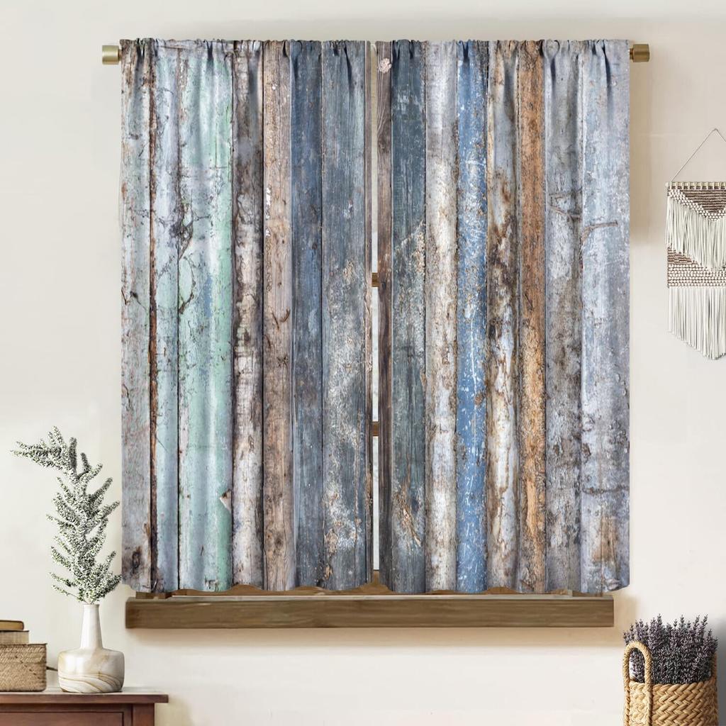 Wood Planks Blackout Curtains Rustic Vintage Wooden Planks Farmhouse Print Rod Pocket Window Treatments Drapes for Bedroom Livin