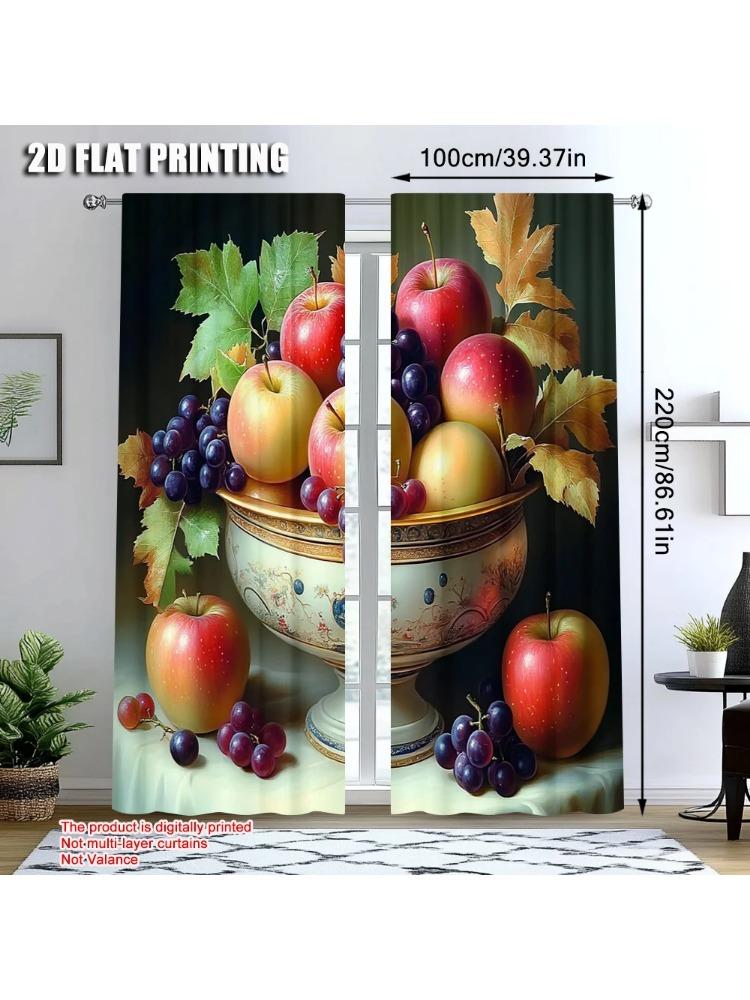 2pcs Curtain Cloth print Fresh And Delicious Fruit Machine Washable (without rod) Stuff Clearance for Living Room Bedroom