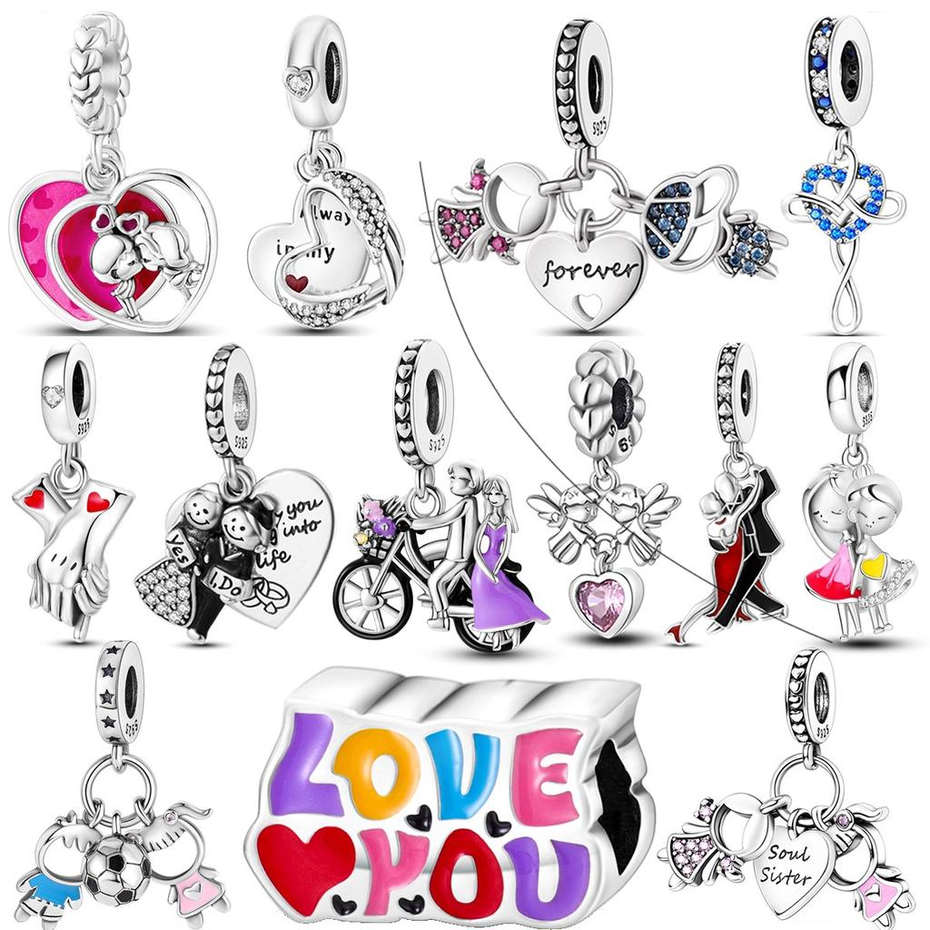 Love You Pendants Copper Forever Lover Girl Boy Fall In Love Wedding Charm Beads Fit Pandora Bracelet Necklace Diy Jewelry