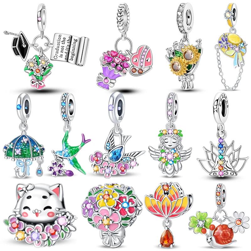 Copper Bouquet Of Flowers Cat Swallow Snail Butterfly Pendant Charms Beads Fit Bracelet Diy Birthday Jewelry Gift