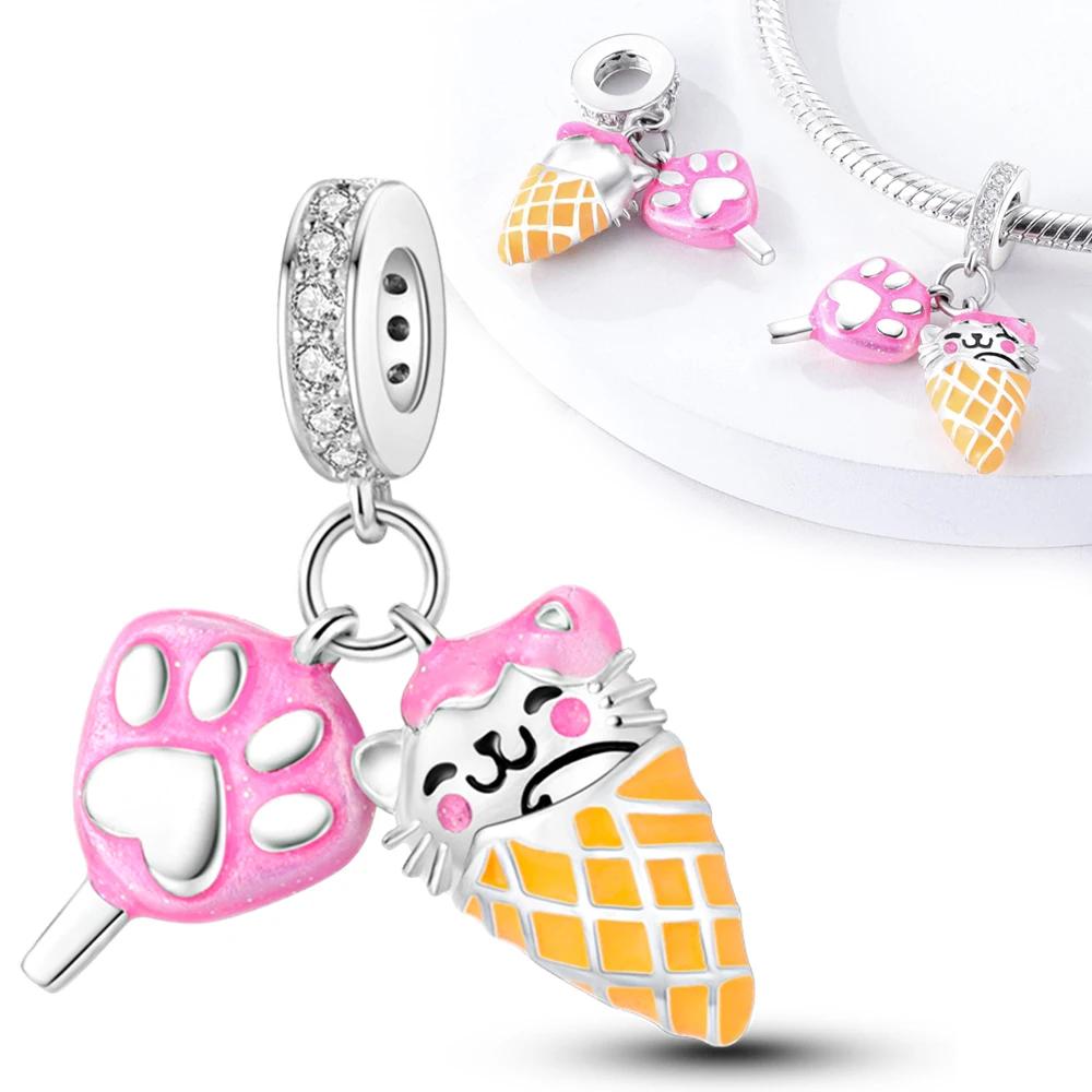 Charms Platapaw Print Ice Cream Cat Ice Cream Beads Fit Originalbracelets Charms For Women Jewelry Diy Making Gifts