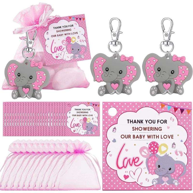 30Pcs Baby Shower Party Theme Keyring Elephant Shape Keychain Set Accessory