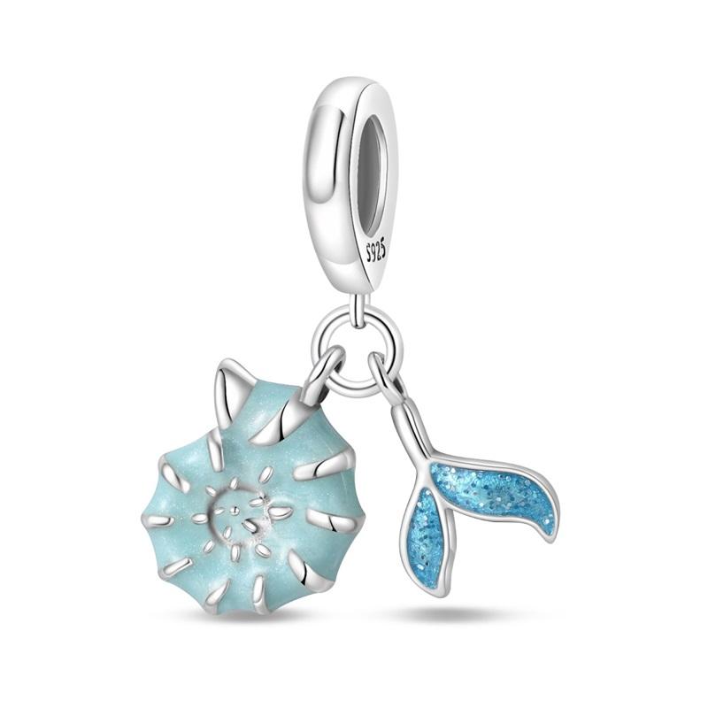 Original Copper Charms Luxury Blue Conch Shell Fish Tail Pendant Beads Fit Bracelet Diy Women Making Delicate Gift