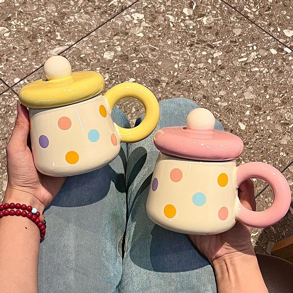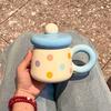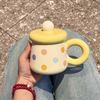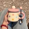 Chubby mug with lid spoon ceramic mug large capacity water cup couple home coffee breakfast cup souvenir