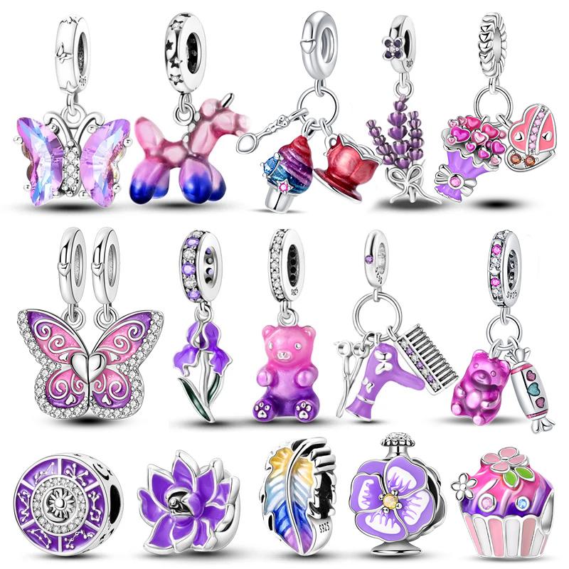 Copper Purple Butterfly Cute Bear Series Charm Beads For 3Mm Original Bracelet Diy Women Jewelry Gift