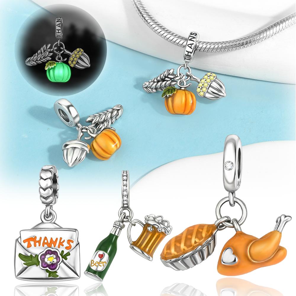 Pumpkin Bread Roast Chicken Beer Thanksgiving Gifts Copper Plated For Charms Copper Plated Original Bracelet For Jewelry Making