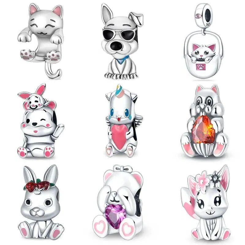 Cute Animals Beads Charms Fit Original 3Mm Bracelet Dog Cat Owl Rabbit Diy Jewelry Making Animals Protection