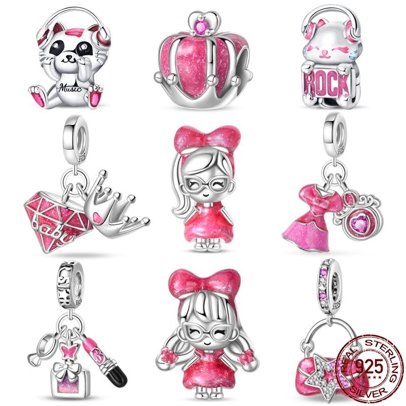 Genuine Copper Pink Princess Series-Crown Pendant Fit 3Mm Pan Bracelet Diy Charm For Women Jewelry Fashion Gift