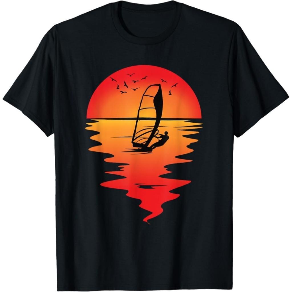 NEWTRUE Windsurfer Vintage Romantic Sunrise Sunset Neck Sinker T-Shirt
