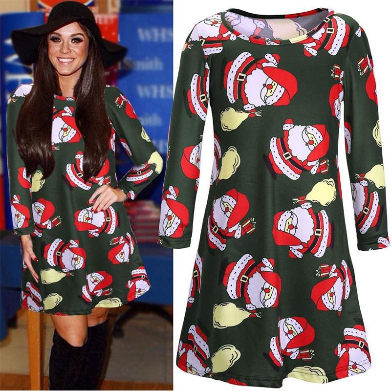 GIRLS CHILDREN XMAS MOTHER & DAUGHTER CHRISTMAS FATHER SANTA BOW PRINT DRESS