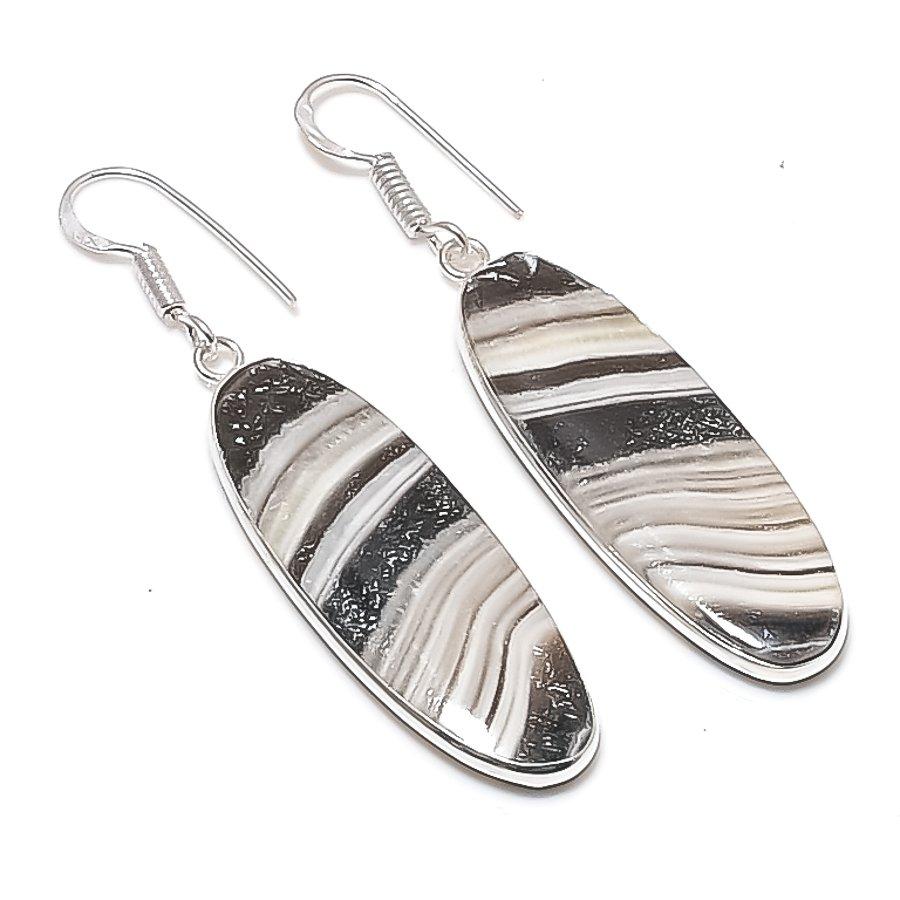 Natuurlijke Calciet Agaat Edelsteen 925 Sterling Zilver Sieraden Oorbel 2.25" AEE-10907