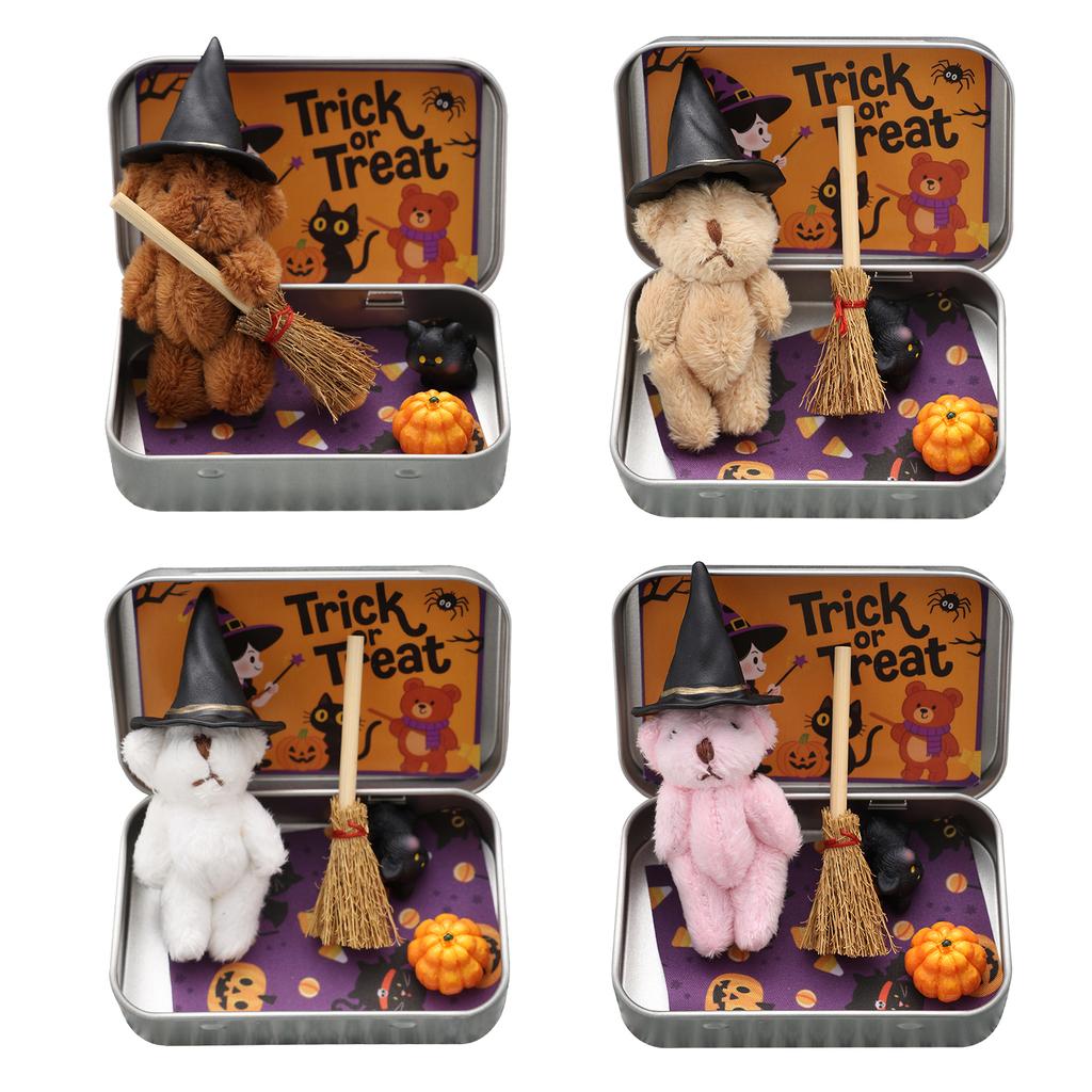 Witch Bear in A Box with Witch Blanket Broom Cape Pumpkins Cats Miniature Witcher Teddy Gift Box Halloween Fillers Gifts Party