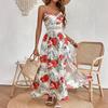 Women Summer V-Neck Elegant Print Resort Style Dress Slip Long Dress