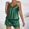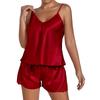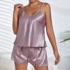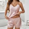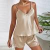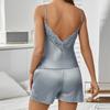 Women Ice Silk Pajama Set Backless Camisole Top and Shorts