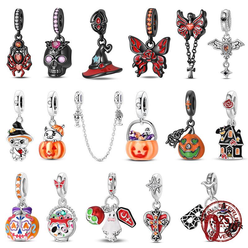 100% Coppernew Halloween Series Charm Pumpkin Skull Beads Fit Originalbracelet Diy Jewelry Making Gifts