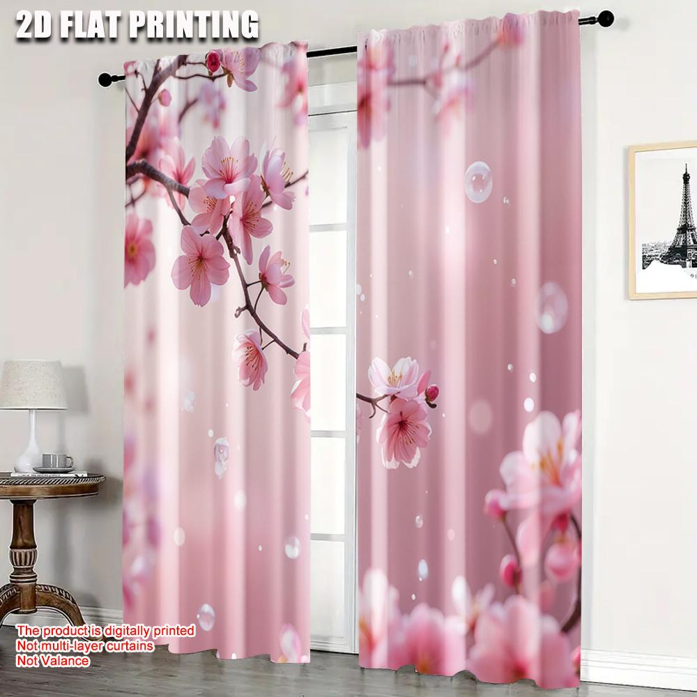 2pcs 2D plane printing Minimalist Curtains Cherry blossom spring scenery Durable Polyester (without rod) Decorations Inside