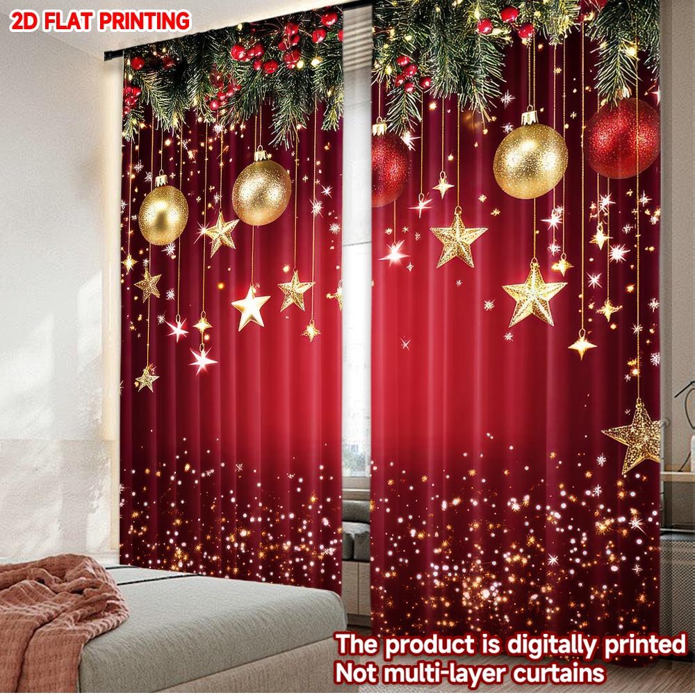 2D flat printing 2pcs Fashionable Christmas Curtains Christmas Golden Stars Glow Digital Printed Polyester Drapes Durable Family