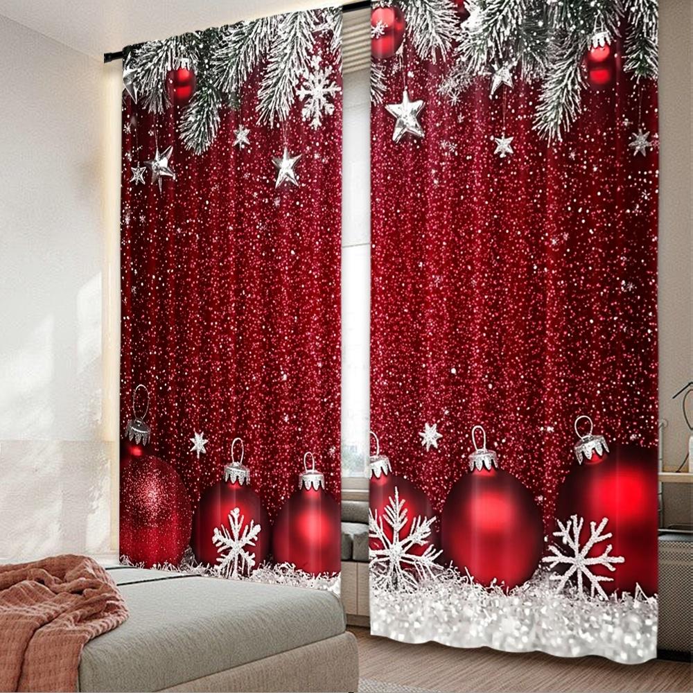 2D flat printing 2pcs Christmas curtains Christmas Red Ball Digital Printed Polyester Drapes Birthday Party Perfect for Parties