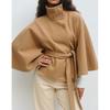 Women's Autumn/Winter Stand-Up Collar Cloak with Button Waist Belt
