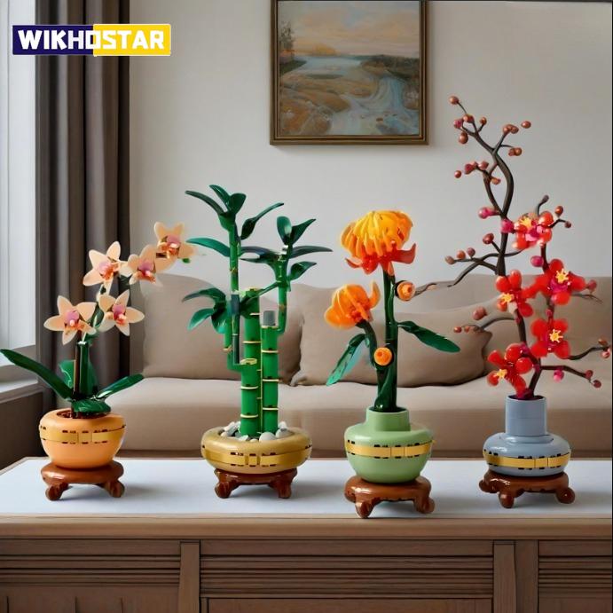 Boeket Orchidee Bamboe Chrysant Pruimenbloesem Bouwblokken Bloemen Speelgoed voor Kinderen en Volwassenen