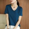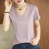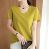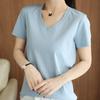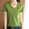 V-neck T-shirt for Women Mercerized Cotton T-shirt for Cotton Thread Short-sleeved Summer Updated Slim Versatile Half-sleeved Top