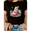 European Size Women's Easter Bunny Floral Print Short Sleeve T-Shirt - Soft, Casual Round Neck, Spring/Summer Sportswear
