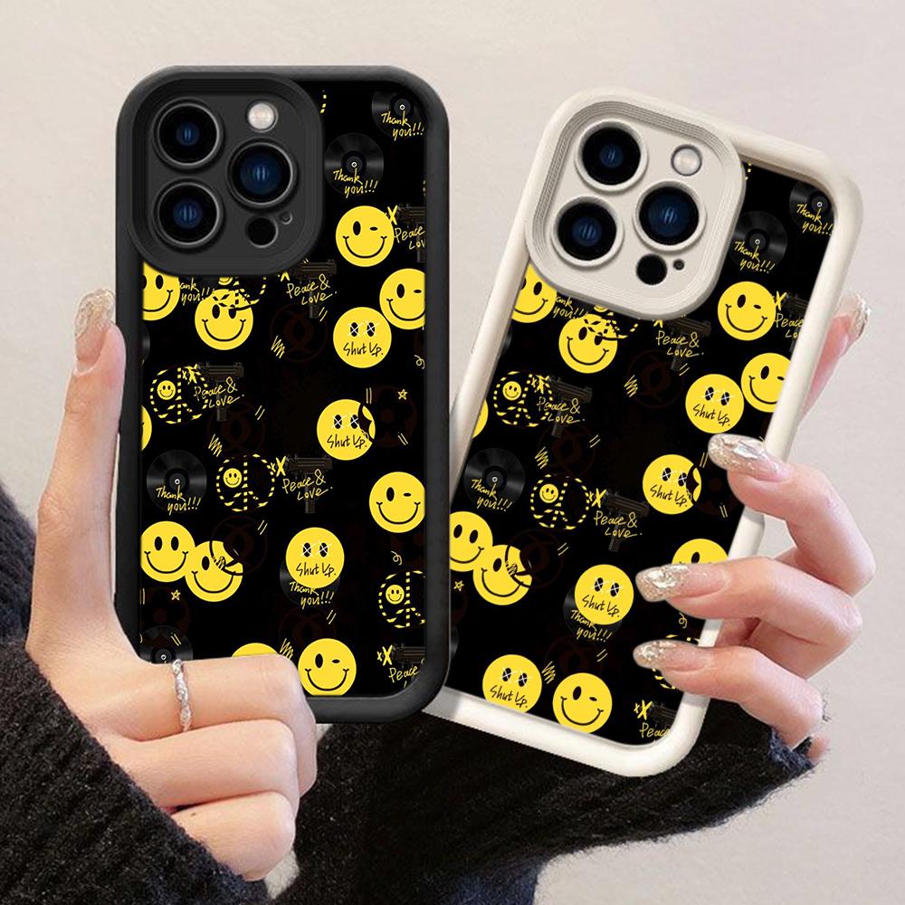 JT88 black smile yellow for iPhone 17 16 15 14 Pro Max Samsung S26 S25 Ultra A17 A16 A07 A56 Xiaomi 15T 13T Redmi 14C 15c Soft TPU Case