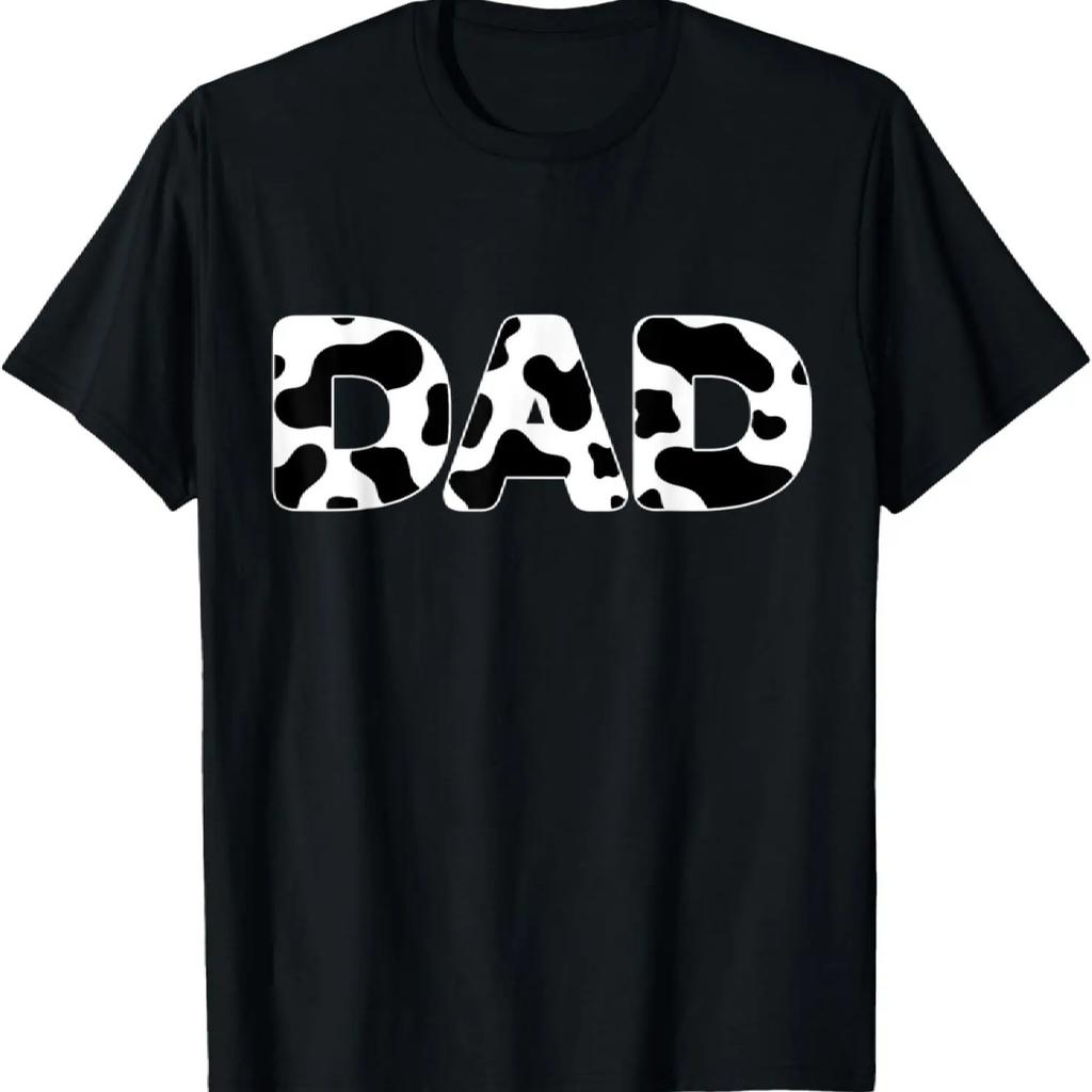 Dad Cow Print Cowboy Pattern Black White T-Shirt