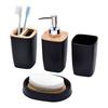 •Soap Dish Features: Oval black tray with bamboo wood drainage base (3 drainage channels)