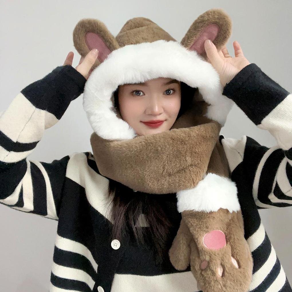 Ttasun Konijn Geïntegreerde Capuchon Sjaal (Bruin)