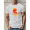 Europese Maat Heren Casual T-shirt met Ronde Hals en Geometrisch Zonpatroon, Polyester Gebreide Stof, Lichte Stretch, Normale Pasvorm, Zomer Top - 150gsm