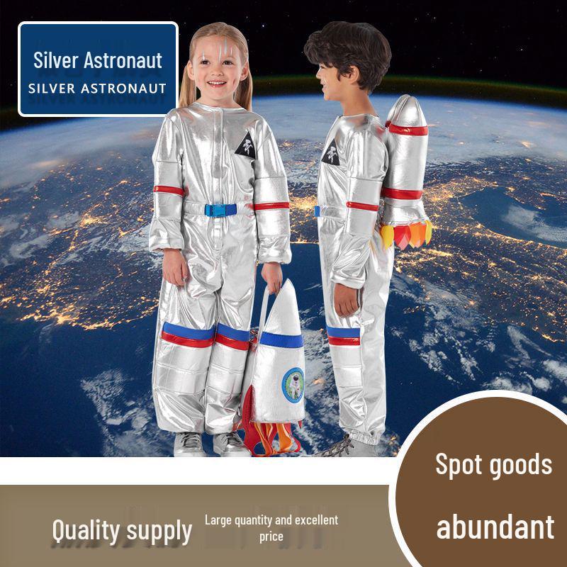 Dit hoogwaardige kinder kostuum is ontworpen om de fantasie van jonge kinderen te prikkelen.. Gemaakt van comfortabel spandexmateriaal, biedt het uitstekende flexibiliteit en duurzaamheid voor actieve prestaties tijdens sportdagen of thematische evenementen.. De strakke, metallic zilveren afwerking geeft een authentieke astronautenlook, perfect voor boeiende optredens en onvergetelijke speelavonturen.