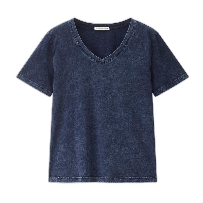 Giordano Women's Designer Imitation Denim V-Neck Cotton T-Shirt