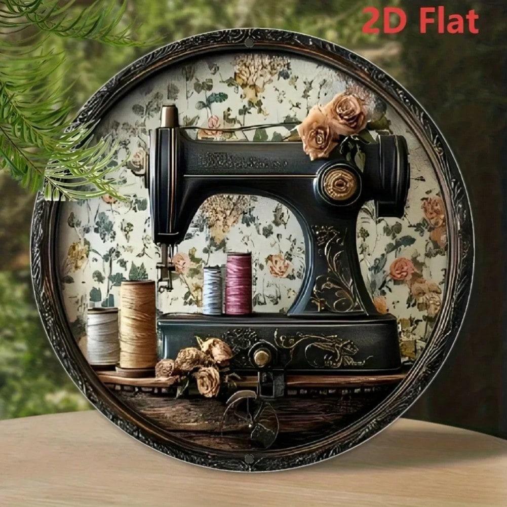 Vintage Sewing Machine Metal Wall Art Sign 8 Inch Round Home Decor Gift