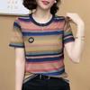 New Summer T-shirt Short-sleeved T-shirt Striped Fashionable Round Neck Mom Shirt Slim-fit Top