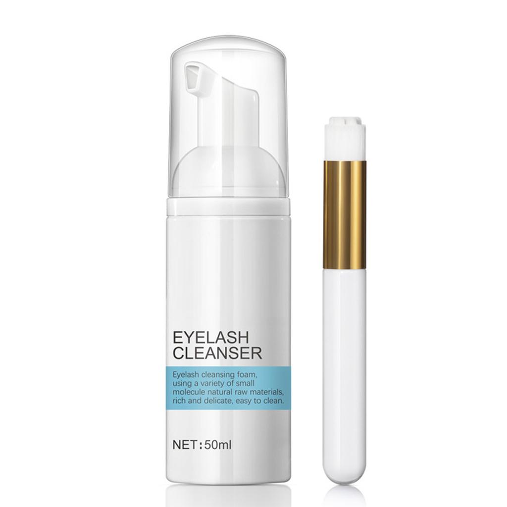 Eyelash Wash Cleanser Shampoo 50ml Eyelashes Eyebrow Foaming Cleanser for Extensions & Natural Lashes Safe Makeup & Mascara Remover