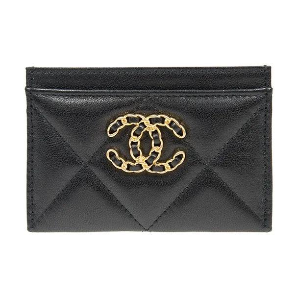 CHANEL 19 Bag Metal-embellished diamond quilting Lambskin leather Cardholder wallet Women's style Black